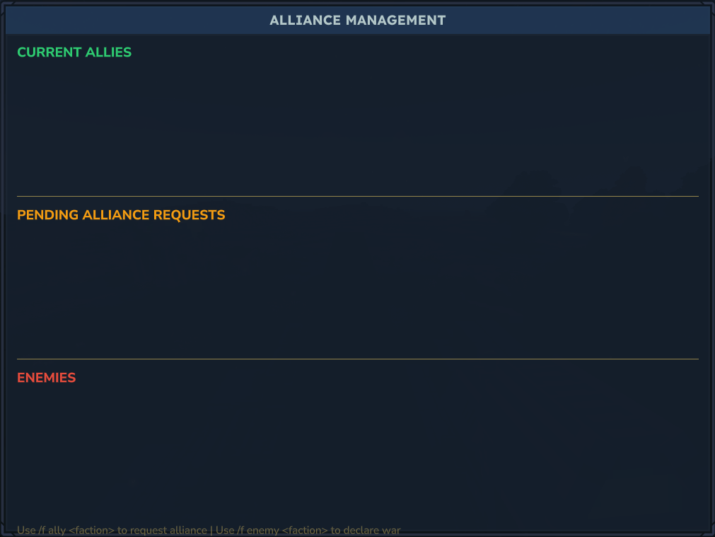 - Faction info, list, rename, leader transfer