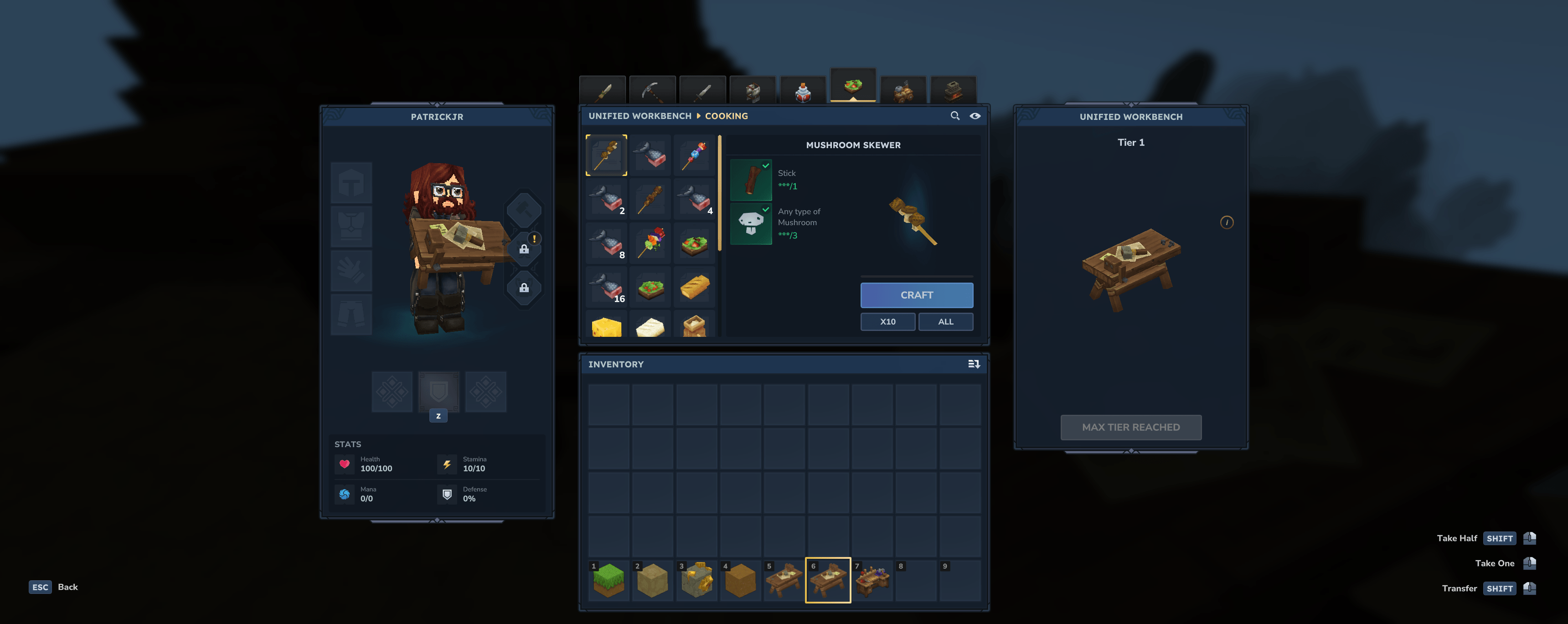 The Единый рабочий стол Мод упрощает ваш опыт крафта, консолидируя рецепты из различных специализированных скамеек в одну станцию. Больше не бегайте между разными скамейками, чтобы создать свое снаряжение, еду или инструменты!