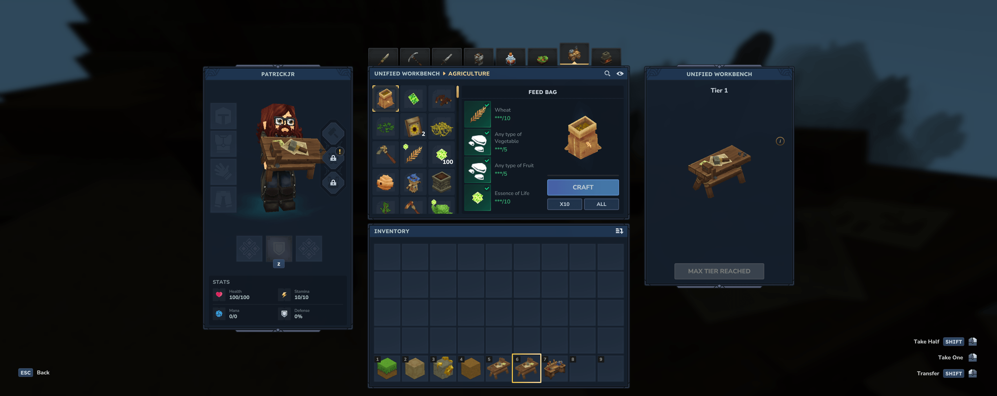 - Centralized Crafting: Access all recipes from a single Unified Workbench.