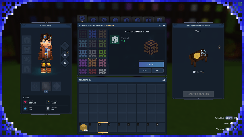 При создании нового мира нажмите на значок винтика и убедитесь, что у «Glassblowers Bench» есть клещ, загрузите свой мир и ваше добро, чтобы идти.