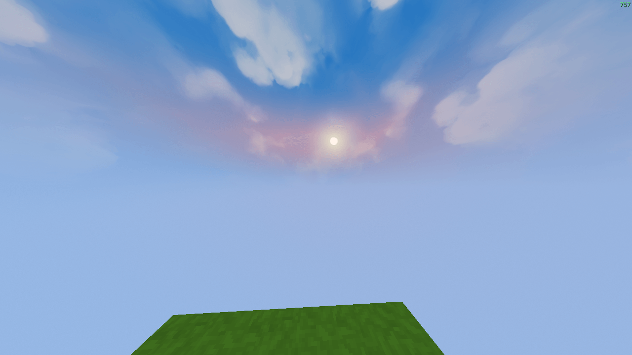 - Фиксированный рендеринг неба путем настройки среды на колонку в пустотном мире.