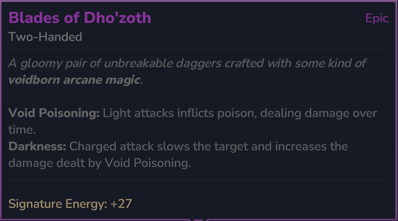 The mod adds a pair of epic daggers called "Blades of Dho'zoth" and the "Shadowy" epic armor set.