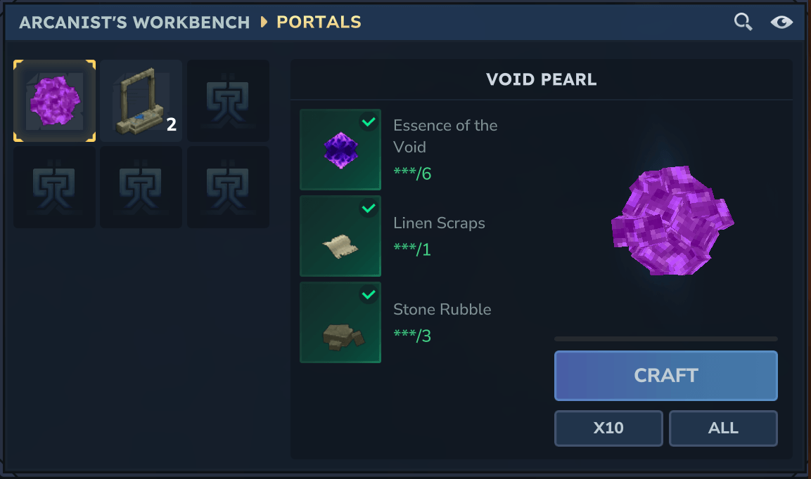 The VoidPearl can be crafted at the Arcanist Workbench using: