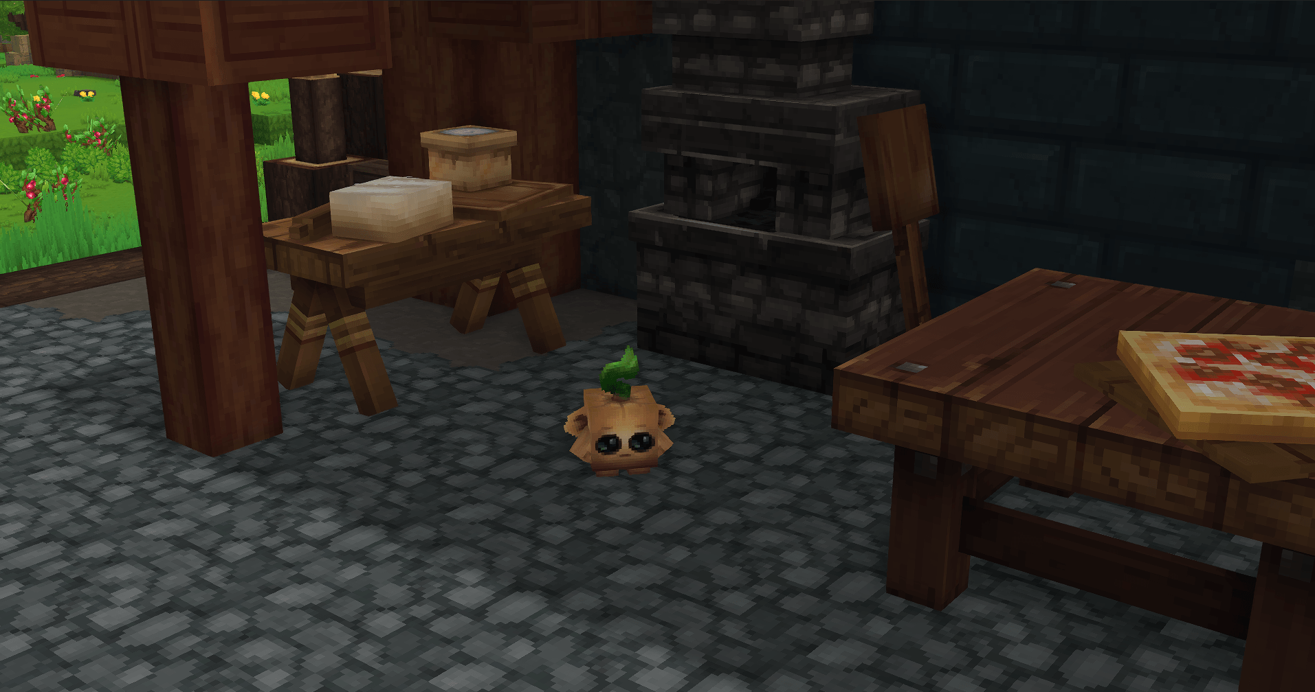 Kweebecs now drop Kweebec Root, which can be used to craft a special kind of pizza. From prepping to baking, every step is handled with new blocks and recipes that fit naturally into survival gameplay.