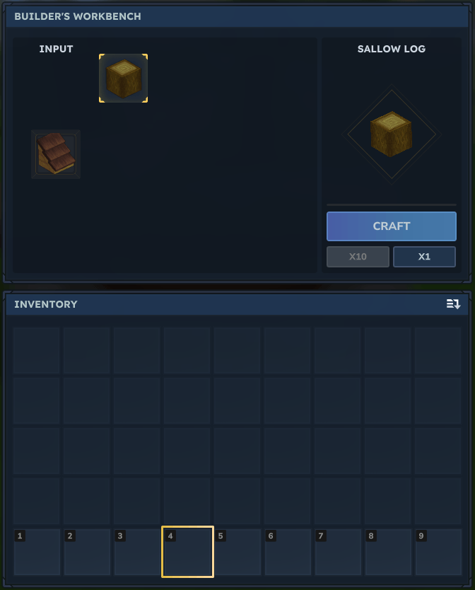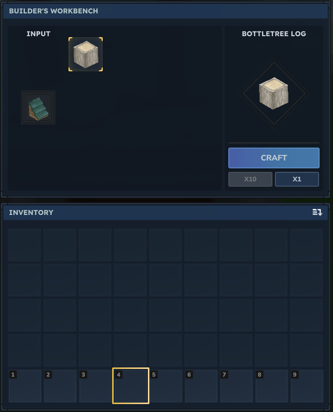 Disclaimer: In some cases, especially with wood, some crafting may be "wrong," but this isn't our fault, it's due to game limitations. For example, if we use Amber Trunk in the builder's bench, we'll receive Goldenwood, but if we try to switch back to Amber Trunk from the product, we'll instead get Sallow Trunk.