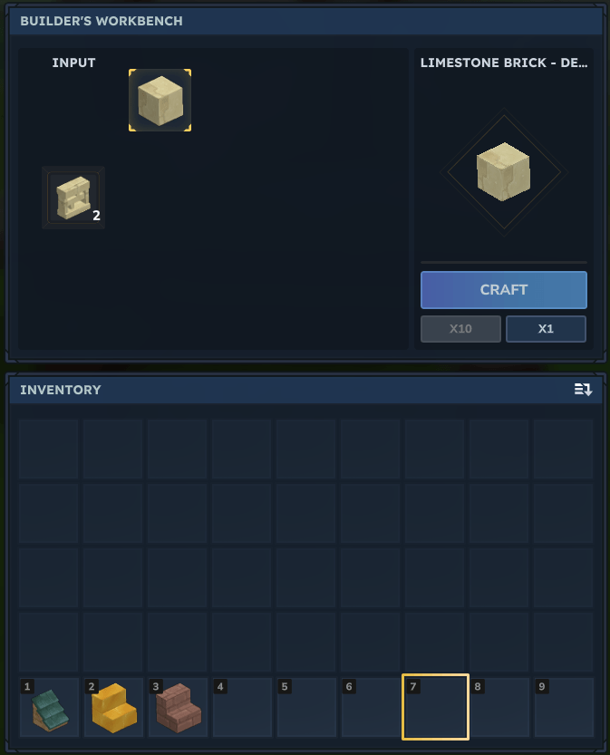 Отказ от ответственности: В некоторых случаях, особенно с деревом, некоторые крафты могут быть «неправильными», но это не наша вина, это связано с ограничениями игры. Например, если мы используем Amber Trunk на скамейке строителей, мы получим Goldenwood, но если мы попытаемся вернуться к Amber Trunk из продукта, мы вместо этого получим Sallow Trunk.