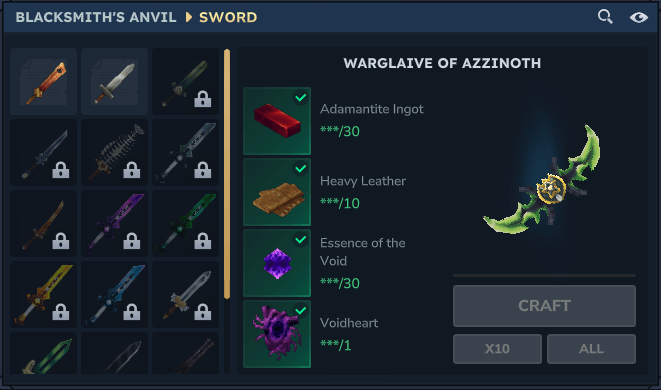 Мод с участием легендарного Виниловые пластинки Azzinoth Его можно использовать как кинжал или меч с одной рукой.