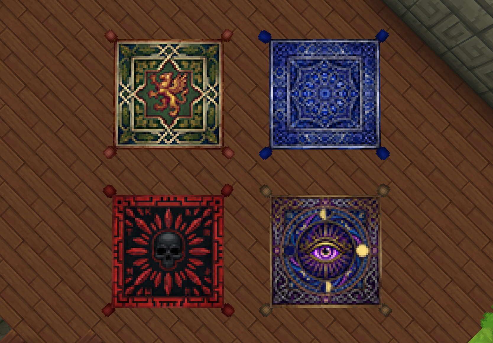 - Rugs: Adds 4 unique rug variants. These low-profile blocks are perfect for adding warmth and detail to floors.