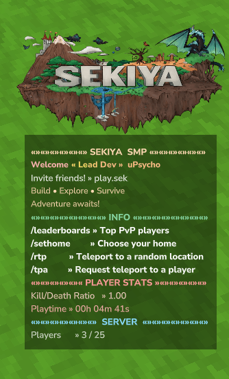 The most powerful scoreboard HUD for Hytale. World-specific scoreboards, permission-based variants, conditional lines, animated text, and seamless plugin integrations.