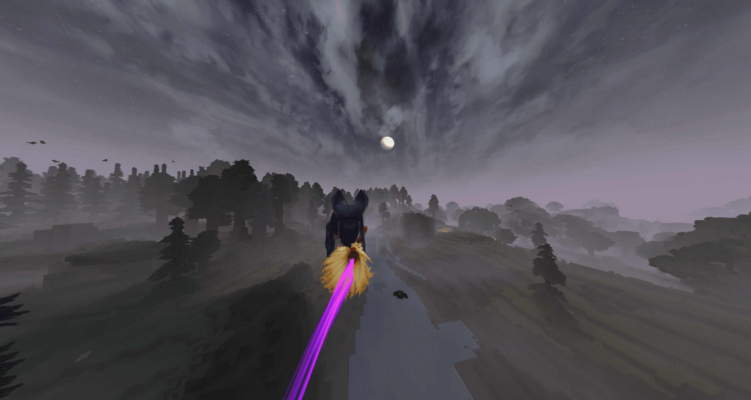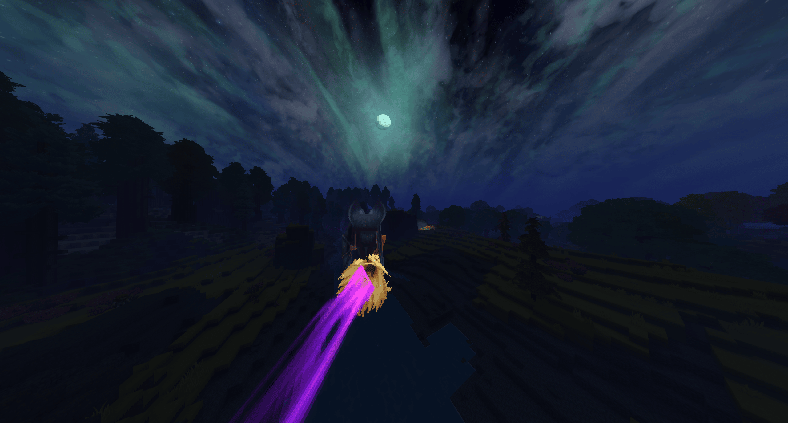 The broom lights up the area and has a purple trail! Usable in Adventure and Creative mode.