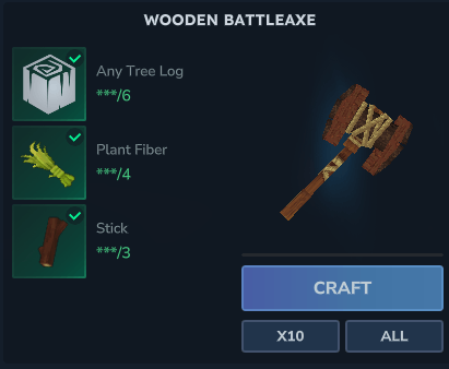 You can now also Craft, Wooden Pickaxe and a Wooden Hatchet.