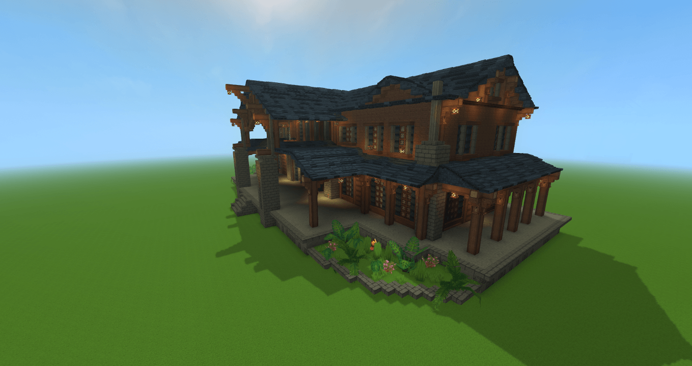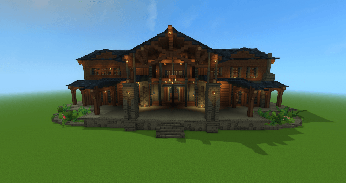 Large 2-Story wooden mansion with open floor plan.