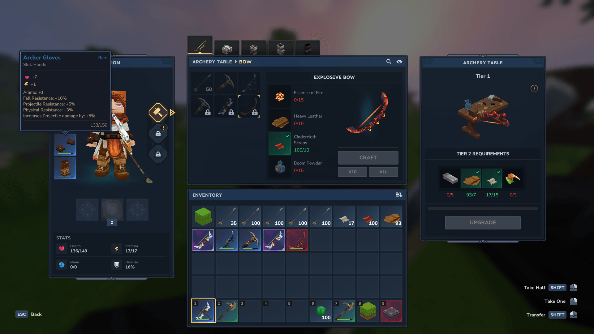 - A full set of Archer armor with custom stats to increase projectile damage & more